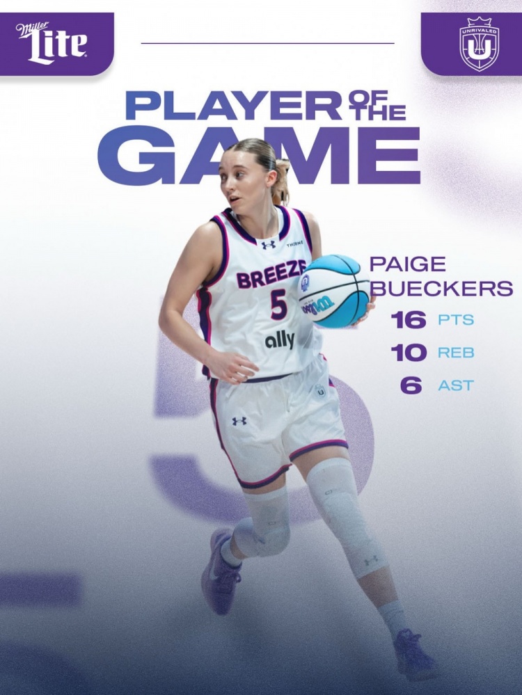 1月10日讯 今天,Unrivaled联赛的第二轮比赛如火如荼地展开,WNBA的明星球员佩奇·布克斯率领她的队伍Breeze以73-62稳稳击败了Hive,成功实现两连胜。 看来,佩奇的表现不仅仅是“好”,而是“完美”,宛如一位舞台上的明星,闪耀在众人之中。