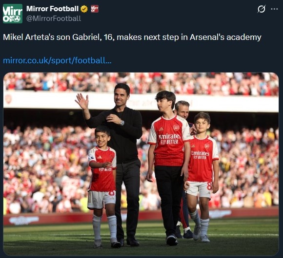 值得注意的是,加布里埃尔出生于2009年,那时阿尔特塔正效力于埃弗顿,而他人生的大部分时间则是在北伦敦度过。对于母队阿森纳来说,他对训练基地可谓熟悉,甚至在2023年夏季以助理教练的身份随队出征美国季前赛,这进一步体现了他与球队的紧密联系以及未来发展的潜力。